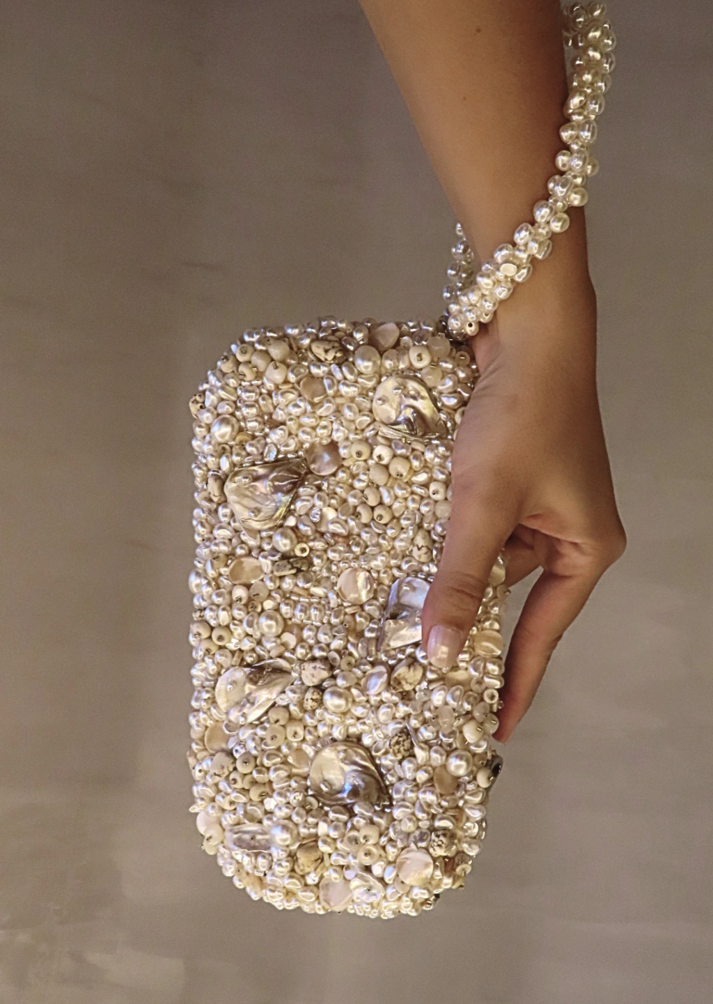 Um verdadeiro tesouro em forma de acessório. A Bolsa Tesouro Pérola é feita 100% artesanalmente, com uma trama encantadora que combina pérolas, madrepérolas e pedras naturais Howlita. Cada detalhe é cuidadosamente trabalhado para criar um design sofisticado e atemporal, perfeito para quem valoriza a exclusividade.
